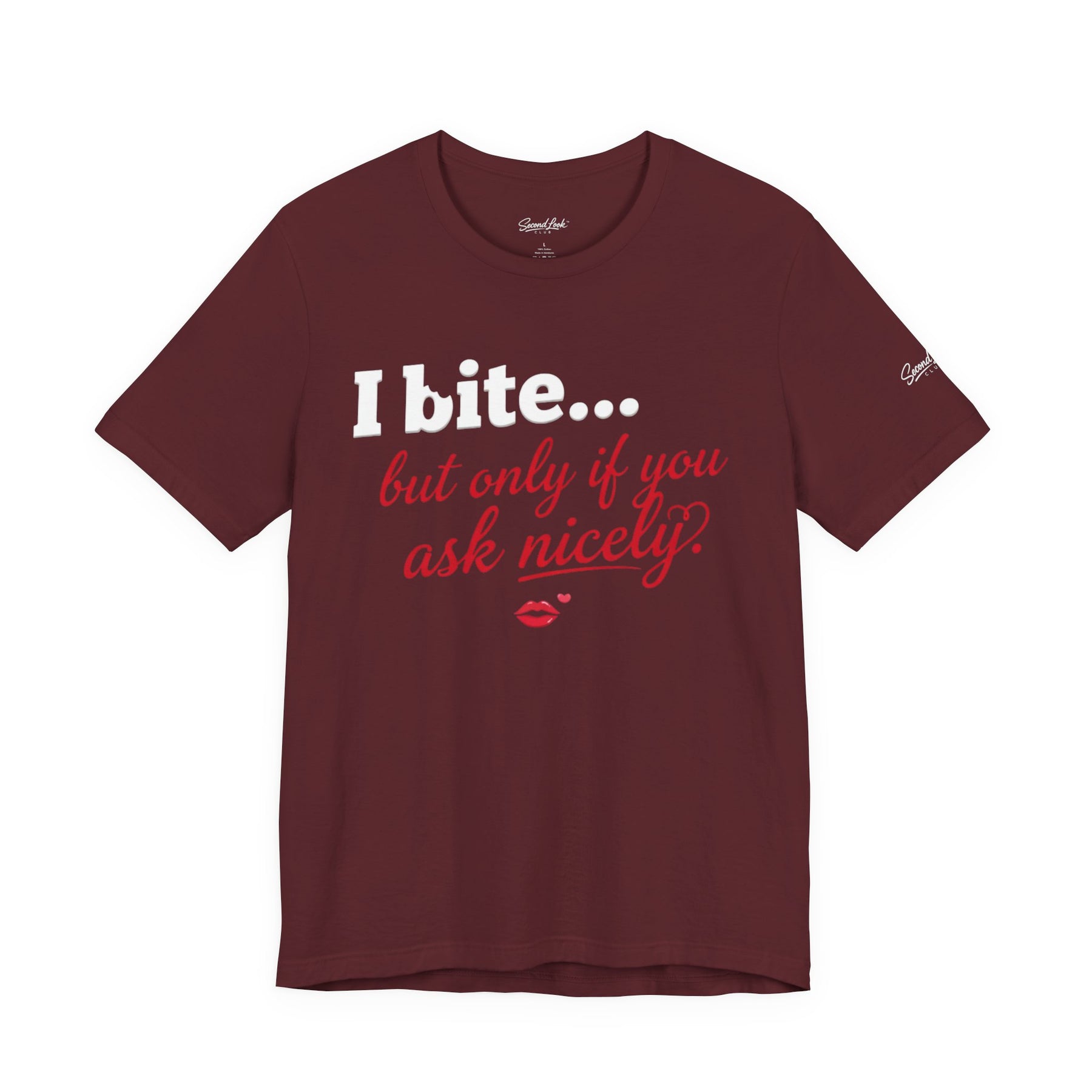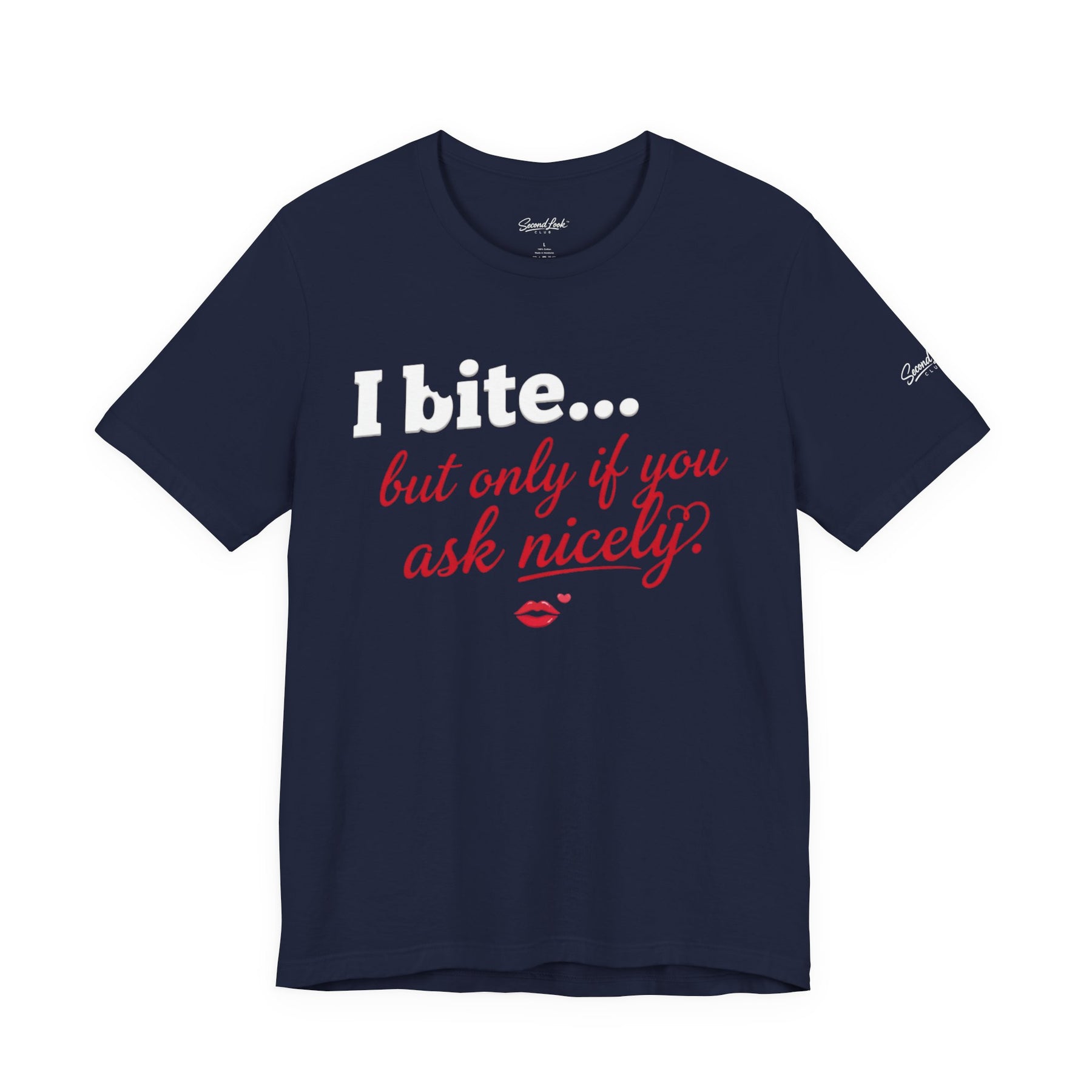 Product Title Sassy Flirty T-Shirt - I Bite But Only If You Ask Nicely Shirt
