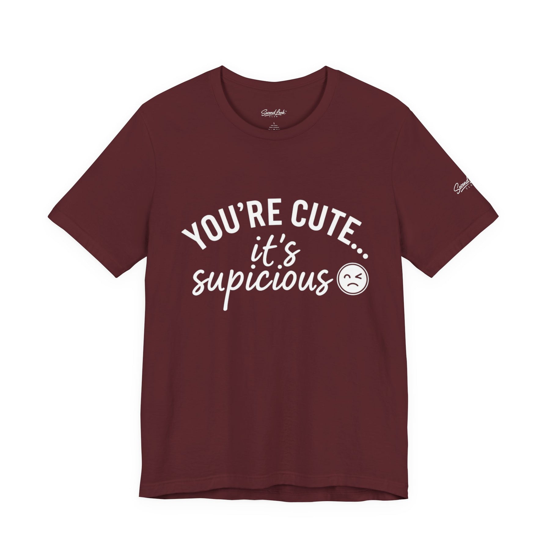 Funny Sarcastic T-Shirt - You're Cute It's Suspicious - Humorous Graphic Tee