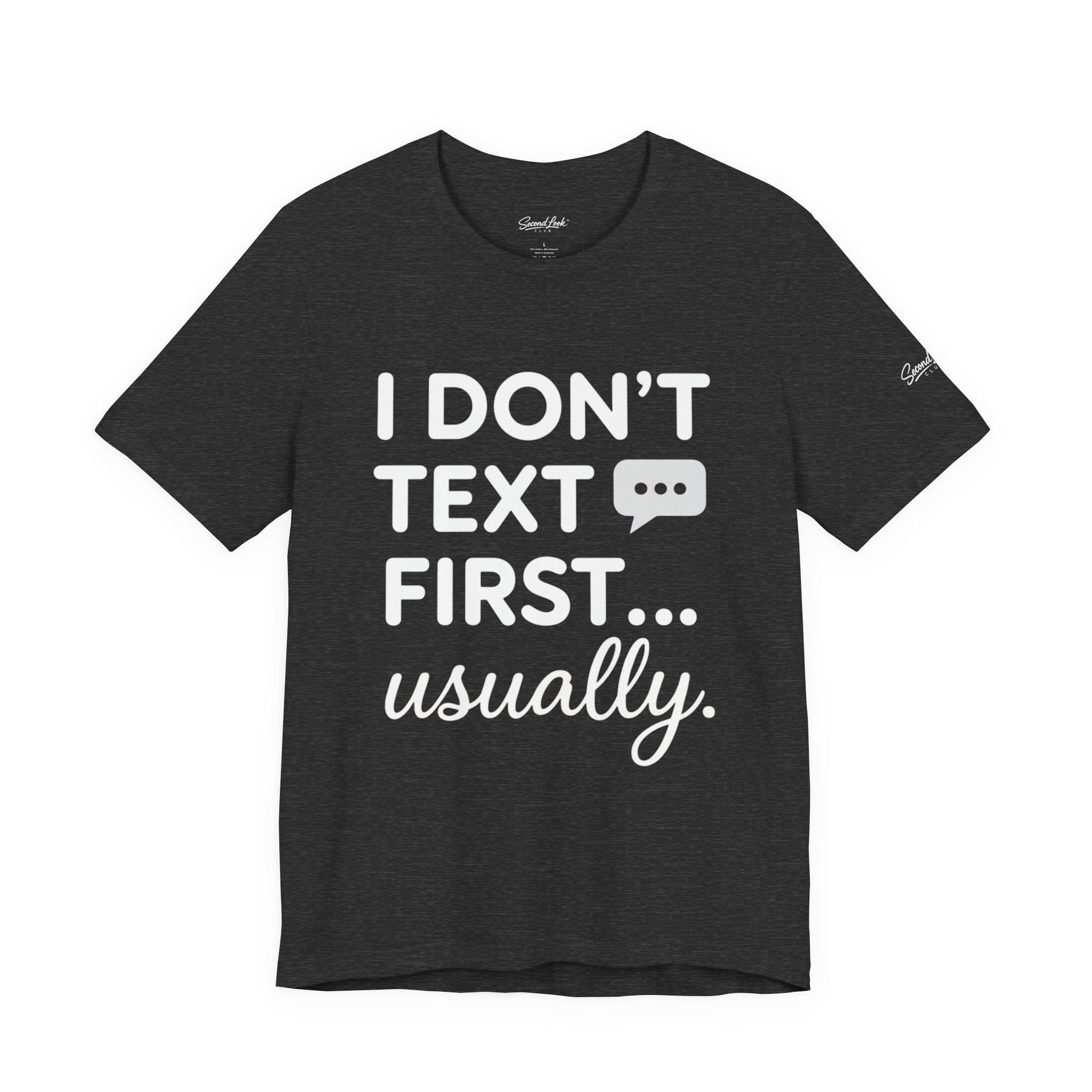 Funny Sarcastic T-Shirt - I Don't Text First Usually - Introvert Graphic Tee